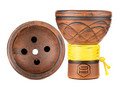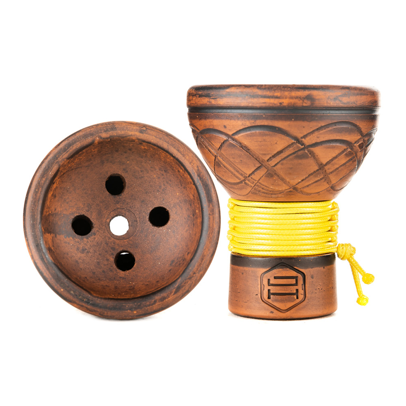 Japona Hookah Turkish (Yellow) - это высококачественные чаши ручной работы из красной глины. Все чаши очень красивые. Особый шарм им добавляет плетёный желтый шнур, которым декорированы чашки Turkish. Чаши от Japona Hookah cтанут отличным дополнением вашей коллекции, а благодаря стильной упаковке их можно рассматривать в качестве презента. Japona Hookah Turkish (Yellow) - это классическая турецкая чашка с пятью крупными отверстиями на дне. Великолепная фактура и плетёный шнур в оформлении ножки.